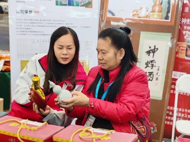 广西的“壮”味当然不止于此,展会上,广西福尤食品有限公司健康营养、口味多样的冻干食品备受青睐;南宁市茗香食品经营部秉持“以自然为本,以健康为愿”的理念,携手广西桂元家生物科技有限公司与国医堂公司共同推出的“国医堂复力营养液”以绿色低成本的特色助力农畜产品提质增效;晓彤胜利服装批发中心带来的日用产品,也以实惠价格吸引众多消费者驻足。从饮食到日用,从传统到创新,广西正以多元、务实、健康的整体形象,在康养产业的道路上稳步前行。