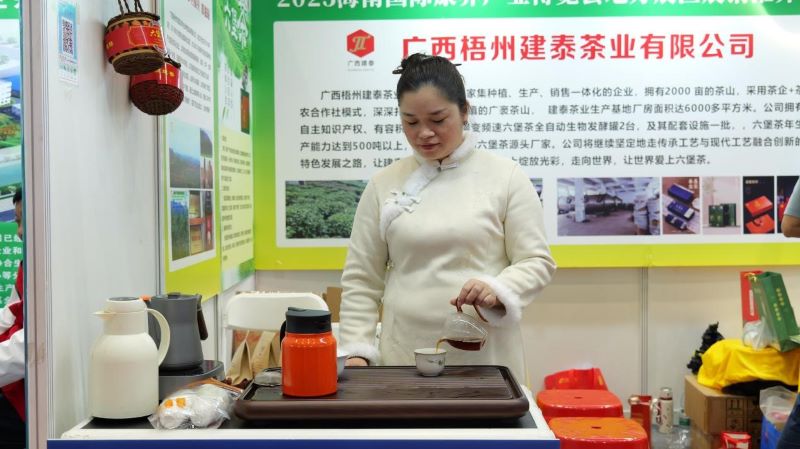 茶脉千年,健康今诠。源自“中国六堡茶之乡”梧州的健康茶饮在本次展会呈现了两条独具特色的产品路径:广西梧州建泰茶业创新推出“六堡茶+茶籽油”康养组合,以茶汤促进代谢,以茶油温润滋养,形成“内饮外养”的协同调理体系;而广西南宁诺凯六堡茶仓则恪守“茶仓窖藏”传统工艺,通过模拟适宜的温湿环境,令茶叶在时光中自然陈化,成就汤感醇和、富含益生菌的茶中佳品,尤其适合祛湿养胃。二者各具匠心,共同诠释六堡茶的养生智慧。依托【北纬30度】数字公共服务平台,门店线下大锅焖煮六堡茶,茶香引客;线上持续引流,意向订单累计已达数万元,为企业带来实实在在的鼓舞。