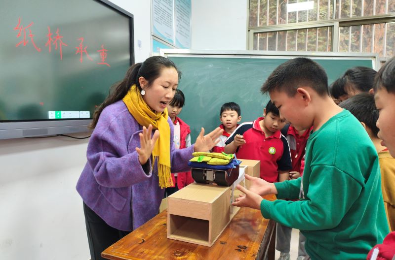 课堂上,老师引导学生运用力学知识设计、制作纸桥,随后进行承重测试。当学生小心翼翼地往自制纸桥上放置重物时,现场气氛热烈,大家紧盯纸桥的承重变化,不时发出惊叹声。老师在旁适时讲解结构稳定性、力的分散等科学原理,让学生在动手操作中直观感受科学的魅力。