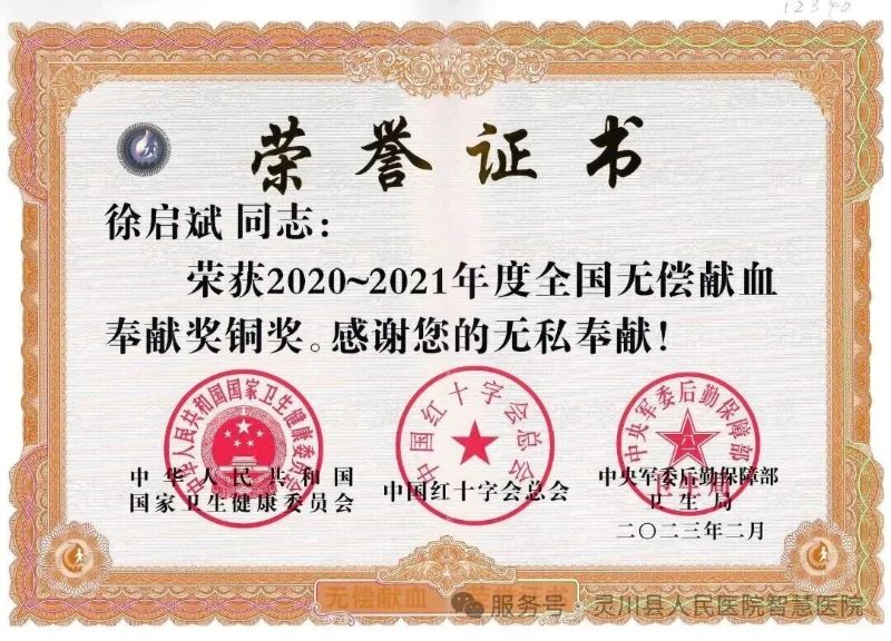 灵川县人民医院徐启斌医师荣获无偿献血国家级铜奖