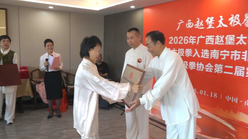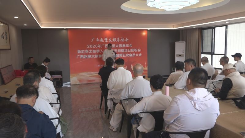 今日广西南宁讯 (罗泳铭) 1月18日,广西赵堡太极拳协会召开第二届第五次会员大会,总结广西赵堡太极拳协会2025年工作以及部署协会2026年工作,并共同见证庆祝“赵堡太极拳”正式入选南宁市非物质文化遗产名录这一历史性时刻。