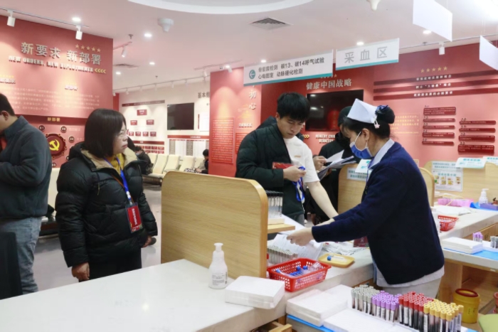 图为应征青年正在进行抽血检查