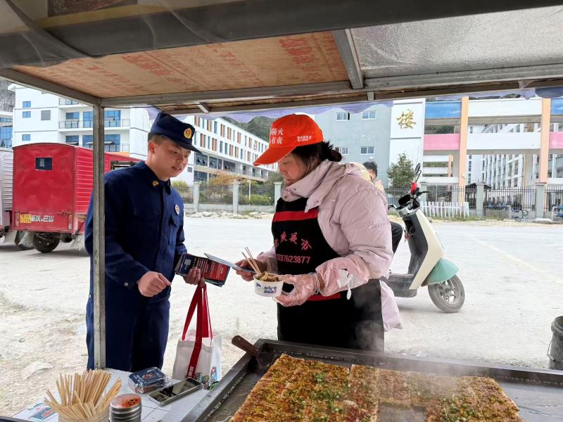 活动中,宣传人员结合冬季天干物燥、火灾易发的特点,以及校园周边场所人员密集、业态复杂的实际情况,用通俗易懂的语言向经营者讲解安全常识。针对小卖部货物堆放密集的问题,强调严禁堵塞疏散通道、违规使用大功率电器;对群租房,重点提醒落实防火分隔措施、杜绝违规住人,及时清理楼道可燃物;向流动摊贩普及液化气罐安全使用规范,提醒定期检查阀门、软管是否泄漏,远离明火作业。宣传人员还现场排查安全隐患,查看灭火器是否完好有效、电气线路敷设是否合规,对发现的私拉乱接电线、可燃物堆放等问题,当场指导整改。同时发放宣传手册,演示灭火器 “提拔握压” 操作方法,讲解 “三清三关” 原则和初期火灾扑救、火场逃生技巧,强化经营者应急处置能力。