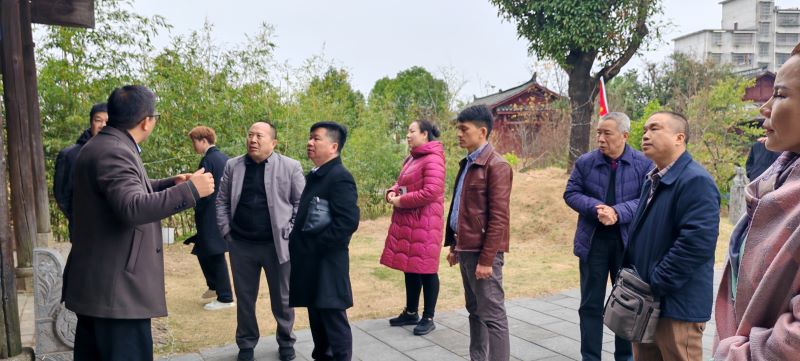 潘氏文旅董事长潘涛(左三)带领考察团参观瓦窑小镇