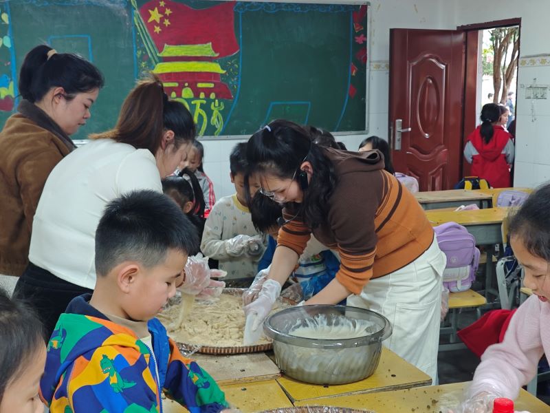 今日广西河池讯 近日,天峨县第二小学低年级劳动课上开展了一场充满烟火气的手工制作活动,孩子们在老师的带领下,化身“小小美食家”,体验传统点心制作的乐趣。