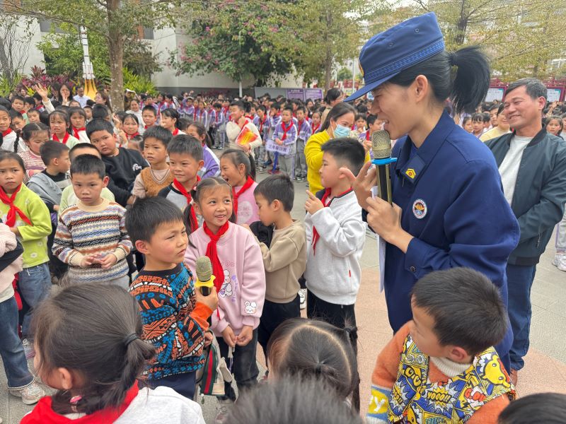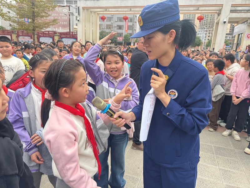 科普结束后,互动问答环节点燃现场氛围。“家里油锅起火该怎办?”“报警时要说明哪些信息?”消防宣讲员接连提问,同学们踊跃举手、积极抢答,现场掌声不断。对回答正确的同学,消防员及时给予鼓励,对易错知识点再次细致讲解,让消防安全常识入脑入心。