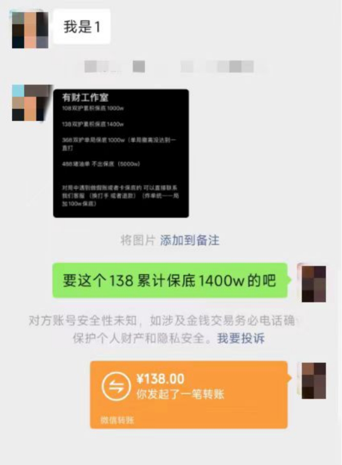 随后,双方互加微信,对方发送了一份详细的“护航”服务价格表,王先生挑选了一款138元的套餐,通过微信向对方完成了转账支付。