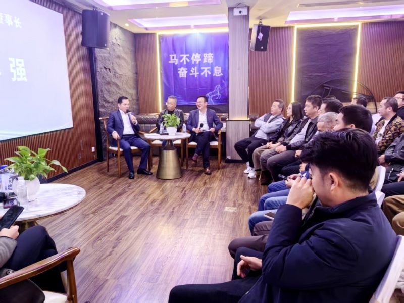 南宁融安商会会长龙再强(左一)跟企业家分享创业经验