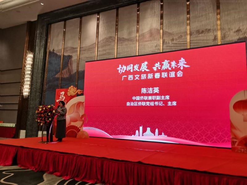 今日广西南宁讯 协同共生启新局,酱香赋能谱华章。2026 年 1 月 30 日,广西文旅新春联谊会在中国 - 东盟博览会永久举办地 —— 广西首府南宁市万达文华酒店盛大启幕。作为广西文旅领域新春伊始的重要交流盛会,本次活动由广西海外文旅联合会主办,广西文化产业协会、广西文旅新媒体协会等联合协办,广西婚嫁文化产业发展促进会承办,汇聚政企商各界精英力量。中国侨联兼职副主席、自治区侨联党组书记、主席陈洁英在会上做重要讲话、广西海外文旅联合会会长、美国旧金山广西商会会长梁昌庆等近 200 位政府领导、商协会精英,及越南、缅甸、马来西亚、新加坡、澳大利亚等海外华侨代表齐聚一堂,共话文旅产业融合发展新机遇。
