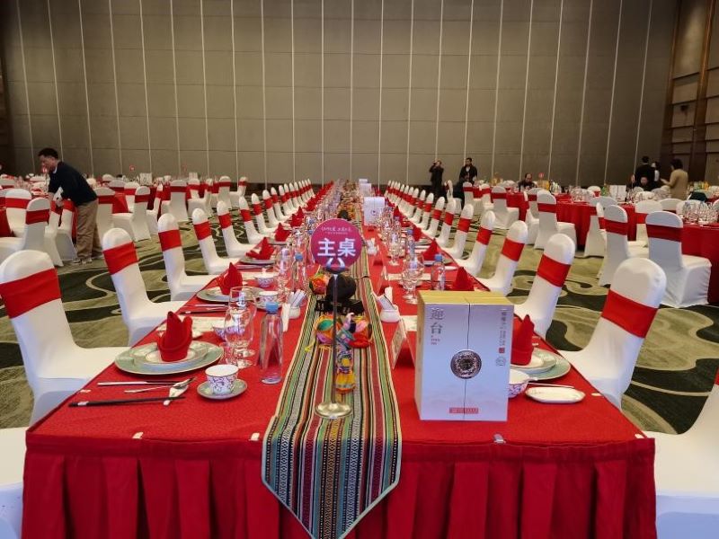 活动现场特设的白酒品鉴区成为一大亮点,浓郁醇厚的酱香吸引了众多嘉宾驻足品尝。嘉宾们在细品后纷纷称赞迎台酱酒 “口感纯正、回味悠长”,不少嘉宾还获赠了迎台酱酒精美伴手礼,进一步加深了对品牌的好感与记忆。晚宴环节,200 余位嘉宾举杯共饮迎台酱酒,在醇厚酱香与温馨氛围中,大家畅谈文旅产业融合、跨区域合作的美好蓝图,共话酱酒文化与地方经济共荣的发展路径,整场晚宴在 “迎盛世、盼归航” 的美好期许中推向高潮,既彰显了品牌魅力,更凝聚了各界携手前行的力量,氛围热烈而温馨。