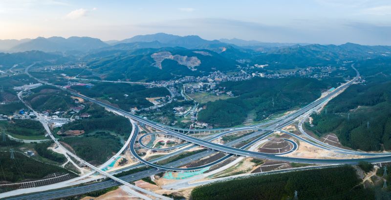 图为2024年6月,建成通车的南湛高速松旺南枢纽互通