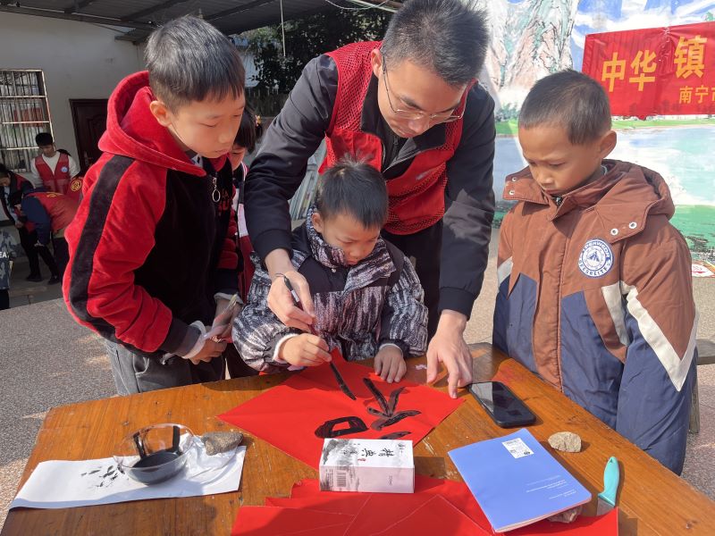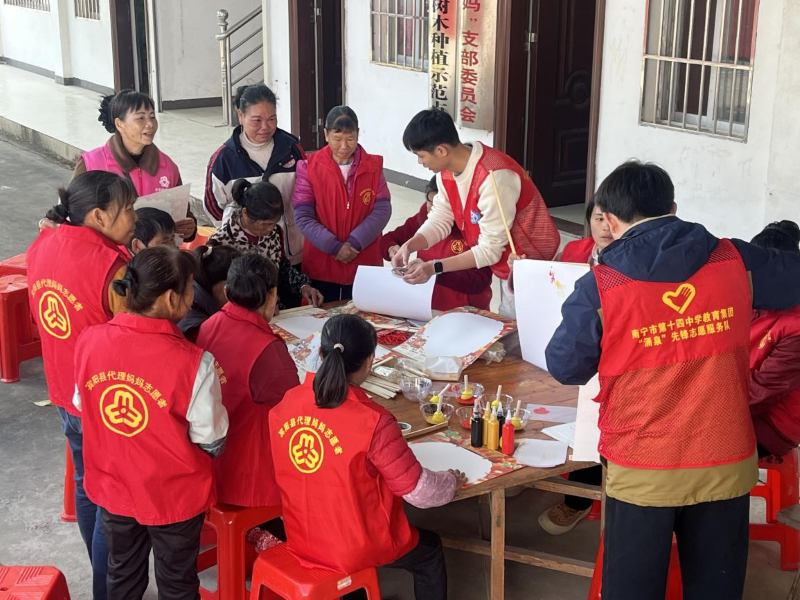 今日广西南宁讯 为弘扬社会主义核心价值观,助力学校德育品牌“模拟家庭”活动传递温暖,2026年2月1日上午,南宁市第十四中学教育集团校团委干部、少先队大队辅导员、教工团支部书记、青年教师代表等一行人前往宾阳县中华镇兴隆村,与“代理妈妈”志愿服务点的“妈妈”们携手开展“趣享游园 悦迎新年”活动,为留守儿童送去温暖与关爱。