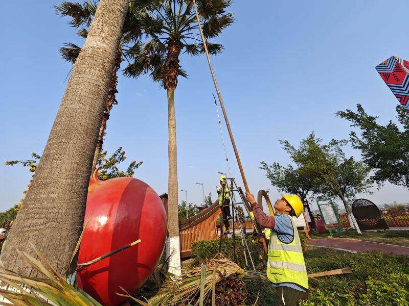 - 工人们及时清理老人葵枯黄、下垂的叶片,使树形更加清爽、美观,保持其作为热带风情植物的观赏价值。同时,也为广大市民群众营造更加整洁美观的绿化环境和活动休闲环境,以更加优美的姿态喜迎新春佳节的到来。 (周贻刚 黄伟瑜)