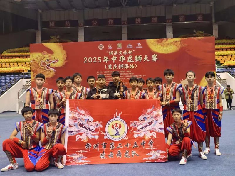 学校荣获市委、市政府颁发的文明单位称号,荣获市文明委颁发的文明校园称号,张廷军校长带领教师研发的“九年一贯制学校民俗特色课程的建设与实践”成果,荣获市政府颁发的2025 年柳州市基础教育教学成果评比一等奖,民俗特色教育成为学校办学核心名片,为区域特色课程建设提供了可复制的实践样本。文体竞技领域更是亮点纷呈,学校“凌云舞龙队”在2025年全国青少年舞龙舞狮锦标赛中勇夺规定套路冠军、自选套路冠军,在第十一届中国中学生舞龙舞狮锦标赛中斩获规定套路第二名,附小的“善美”啦啦操队在全国啦啦操联赛(桂林站)喜获集体技巧自选动作第一名,中学及附小的善美学子在跳绳锦标赛中分获冠亚季军等多项荣誉,充分展现了学子们的青春风采与团队凝聚力。在筑牢中华民族共同体意识教育中,学校被自治区教育厅授予“全区大中小学思想政治教育一体化共同体暨筑牢中华民族共同体意识教育联盟(柳州片区)成员单位”,黄振霜老师被认定为广西基础教育自治区级骨干教师,这些荣誉的背后,是师生同心、砥砺奋进的坚守,为学校高质量发展奠定坚实基础。