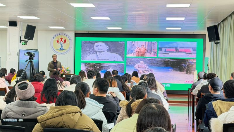 在二十五中校长张廷军主持下,活动首先由殷茁雄书记作《弘扬爱国主义精神、教育家精神,为党育人、为国育才》专题讲座。殷书记深情讲述中国近代爱国教育家张伯苓、抗日爱国将领吉鸿昌救国救亡的感人故事,希望大家坚定心有大我、志诚报国的理想信念,陶冶言为士则、行为世范的道德情操,弘扬传承先辈的爱国主义精神,珍惜来之不易的幸福生活。他认真宣讲党的二十大精神,以及2026年全区教育工作会议精神,使大家明白团结奋斗的重要性和落实教育强区建设和十五五规划的时间进程表,全力推进立德树人赋能增效,推动人工智能与教育双向奔赴。他用自身成长经历,阐释老子《道德经》“有无相生”原理、波粒二象性、量子纠缠、现代人脑科学等,充分说明了立德树人的重要性,强调教育工作者要肩负为党育人、为国育才的光荣使命,要心怀家国,将爱国情怀、民族精神融入到教育教学全过程,廉洁从教,做“四有”好老师,把握规律,科学育人,立足本职岗位,大力弘扬教育家精神,把习近平新时代中国特色社会主义思想融会贯通,自觉运用到工作中去,如人民至上、自信自立、守正创新、问题导向、系统观念、胸怀天下等。针对学生思想政治教育和心理健康出现的新问题,他强调要以问题为导向,关注和研究人的大脑杏仁核对思想情绪波动的影响,根据不同年龄特点,认真研究行之有效的六种修复办法,形成二十五中善美文化的新特色。他建议切实加强年级党支部建设,像毛主席当年“三湾改编”一样,充分发挥党支部的战斗堡垒作用,切实加强党对教育工作的全面领导……殷书记的讲座引经据典、情感真挚、风趣幽默,既有理论高度,又有实践指导意义,赢得了在场教师的广泛共鸣和热烈掌声。