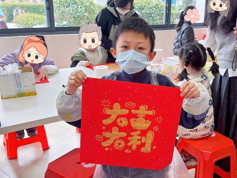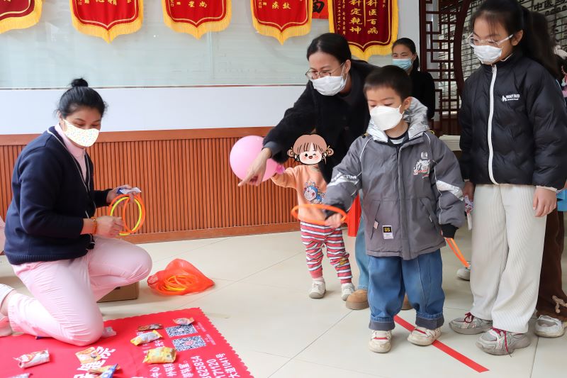 游园环节将活动推向高潮:蒙眼敲锣寓教于乐,零食抛圈趣味横生,投壶竞技雅致生动,开心滚滚乐笑声不断。拓印福字DIY区内,亲子携手印下吉祥图案;写对联桌前,笔墨流转祝福满满。