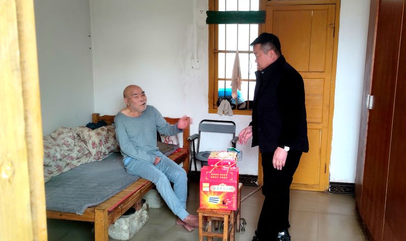 2月10日当天,东安乡双棒村党总支部书记邓喆带着爱心人士邓国璋的嘱托和爱心,带领党员代表一道来到东安乡敬老院。大家与老人们促膝谈心、嘘寒问暖,详细了解他们的饮食起居、健康状况与日常生活等,并叮嘱老人们在寒冬里注意添衣保暖、安心颐养。随后,邓喆将沙糕、水果等春节慰问品逐一送到老人手中,传递出浓浓的爱心与牵挂。敬老院老人们脸上始终洋溢着开心的笑容,他们连声感谢爱心人士的惦念与村党组织的关怀。