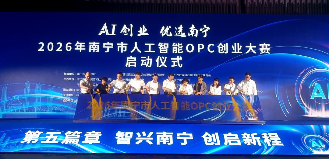 今日广西南宁讯 4月15日,首届(中国·南宁)人工智能应用创新创业邀请赛颁奖仪式暨2026年南宁市人工智能OPC创业大赛启动仪式顺利举办,仪式由广西南宁市人力资源和社会保障局、南宁五象新区管委会等联合主办。仪式回顾总结邀请赛成果及为邀请赛获奖选手团队进行颁奖,并正式启动2026年南宁市人工智能OPC创业大赛。同时,南宁市人力资源和社会保障局发布了服务支持人工智能OPC创业发展十条措施,五象新区管委会制定了支持打造人工智能OPC创新发展先行区十五条措施。在全区率先在政策上为OPC(一人公司)创业个体提供坚实支撑,为南宁打造面向东盟的人工智能产业高地、培育新质生产力源源不断注入强劲动力。