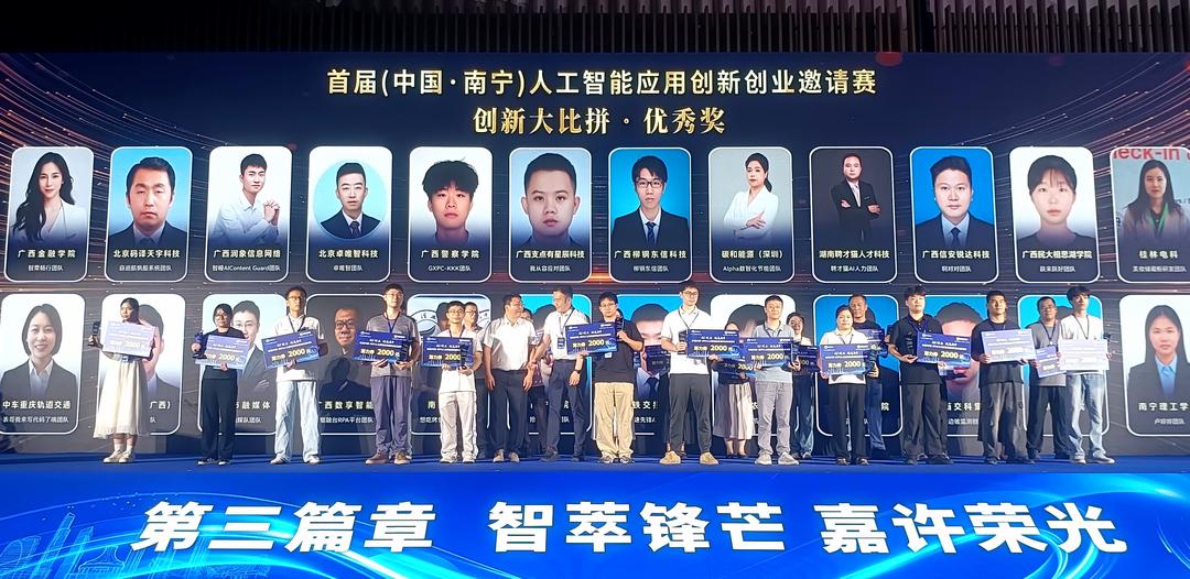 为积极响应国家深入实施“人工智能+”行动号召,进一步贯彻落实广西壮族自治区、南宁市推动人工智能赋能千行百业工作部署,首届(中国·南宁)人工智能应用创新创业邀请赛于2025年9月正式启动,得到社会各界高度关注和支持,大赛面向全球邀约、多元汇聚,集结了英国剑桥大学、清华大学、香港中文大学等国内外顶尖选手,覆盖北、上、广、深、杭等全部一线城市,超1200个选手团队踊跃报名。